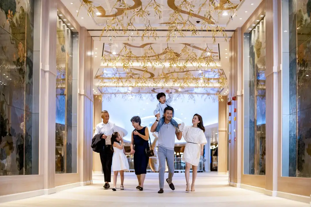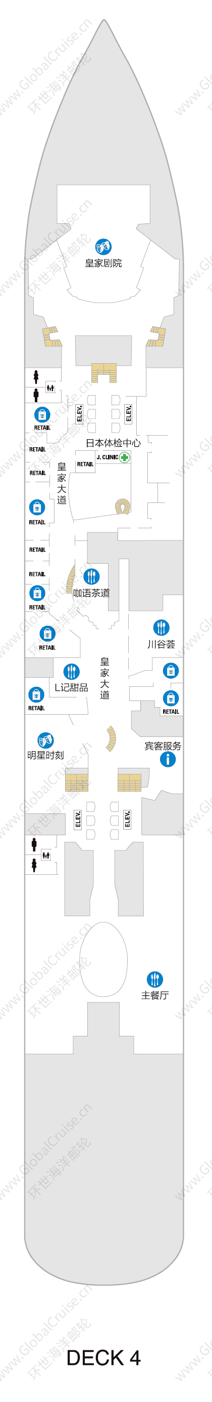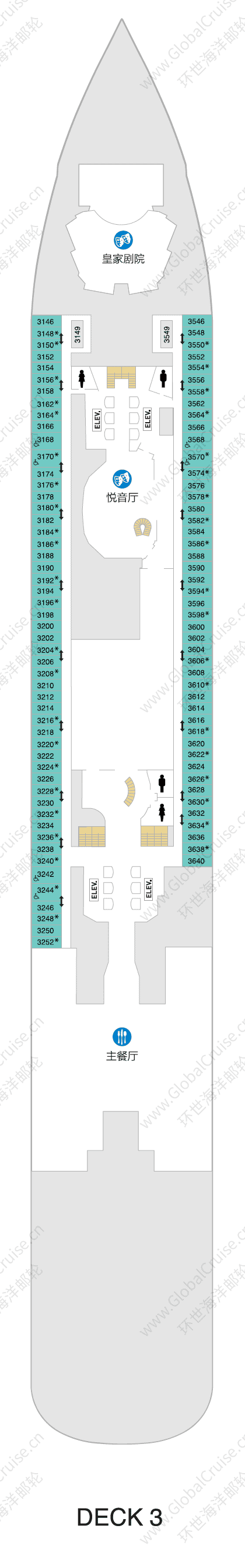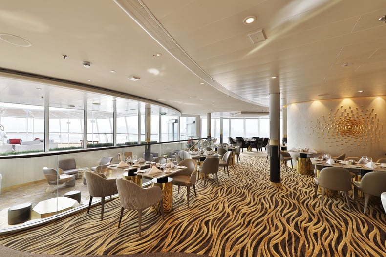 4间独立主餐厅合并3层挑高、可容纳1844人的盛宴式免费主餐厅,行程中每天提供不同的中西两种菜谱供游客单点,自由选择分餐或家庭分享。