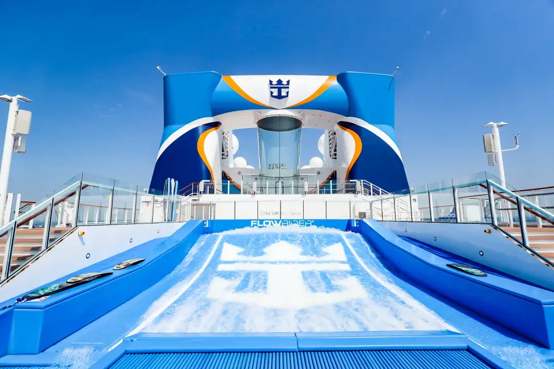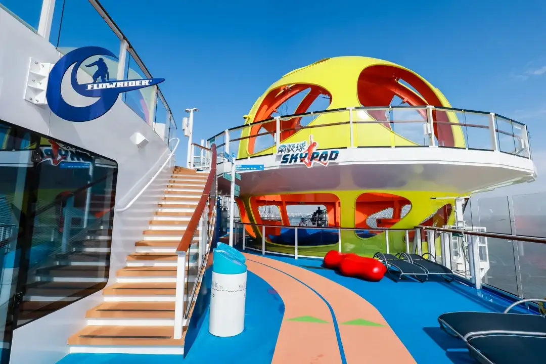 亚洲旗舰邮轮的巅峰之作~~皇家加勒比"海洋光谱号"(Spectrum of the Seas)作为专为亚洲市场打造的超级巨轮,16.8万吨级船身汇聚全球顶尖邮轮科技。船上拥有"南极球"VR蹦极、双层豪华套房和海上碰碰车等创新设施,更设有亚洲首个邮轮"川谷荟"川菜餐厅。以上海为母港,执航日本福冈、冲绳等热门航线,4-7天短途度假轻松体验。270度景观厅的震撼演出与甲板跳伞的刺激体验,满足全年龄层游客需求。登上光谱号,畅享海陆空三维度假体验!