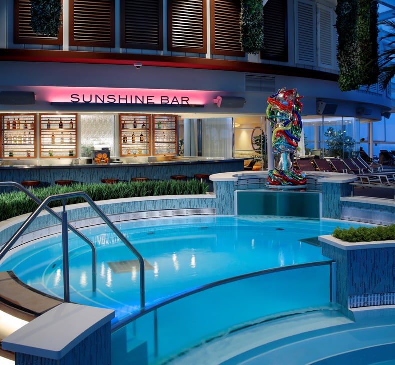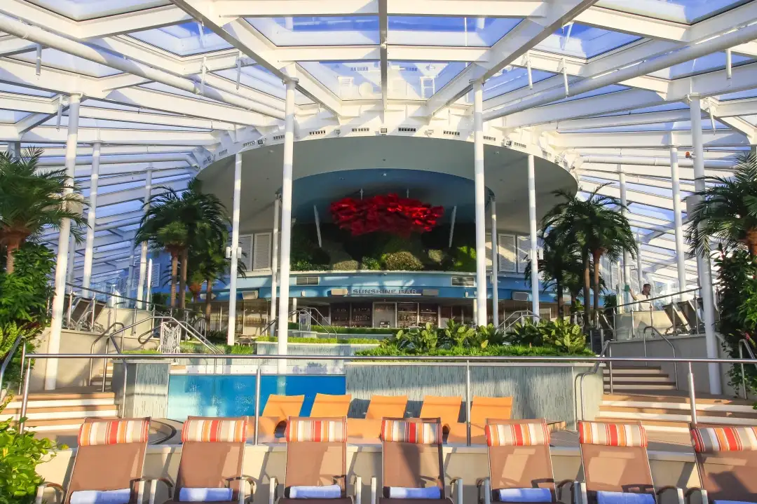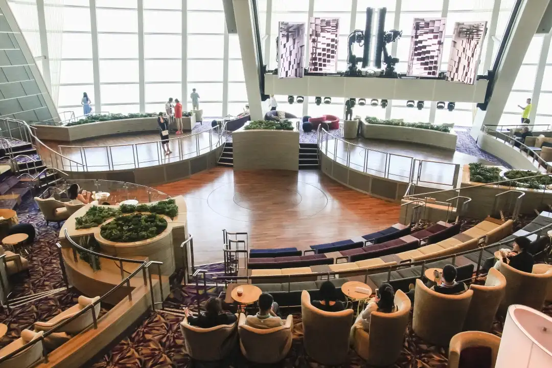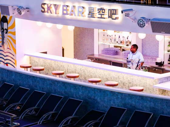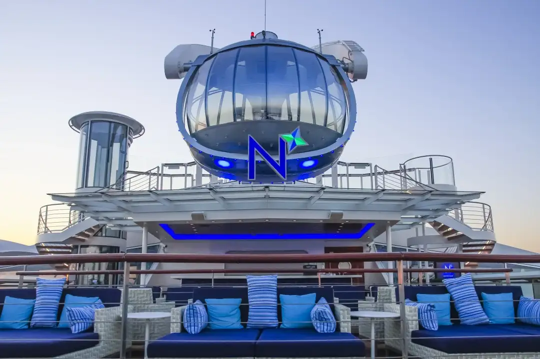 登上北极星,升至距离海平面88.6米的高空!从透明玻璃望出去,既能享受无边的蔚蓝大海,又能把赞礼号的甲板景色尽收眼底!