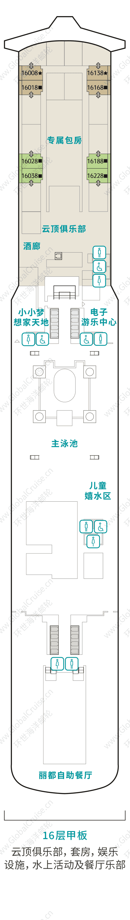 楼层:16容纳:消费:免费此设施位于16层甲板。