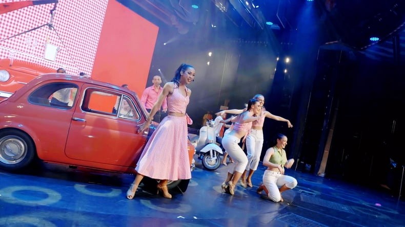 【2-4层船头奥西里斯大剧院演出】舞台化身地中海街头,让你身临其境感受欧式风情。专业舞者演绎意大利时尚,每一步都充满热情与活力。