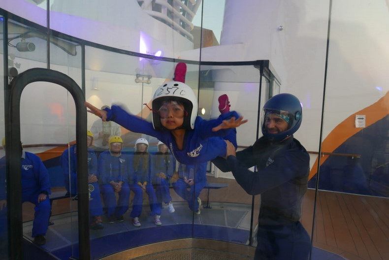通过垂直的风洞产生气流,让想尝试极限运动的您体验在游轮上空飞翔同时俯瞰海面的超凡体验。由专业教练进行指导,使您在体验刺激的同时安全放心