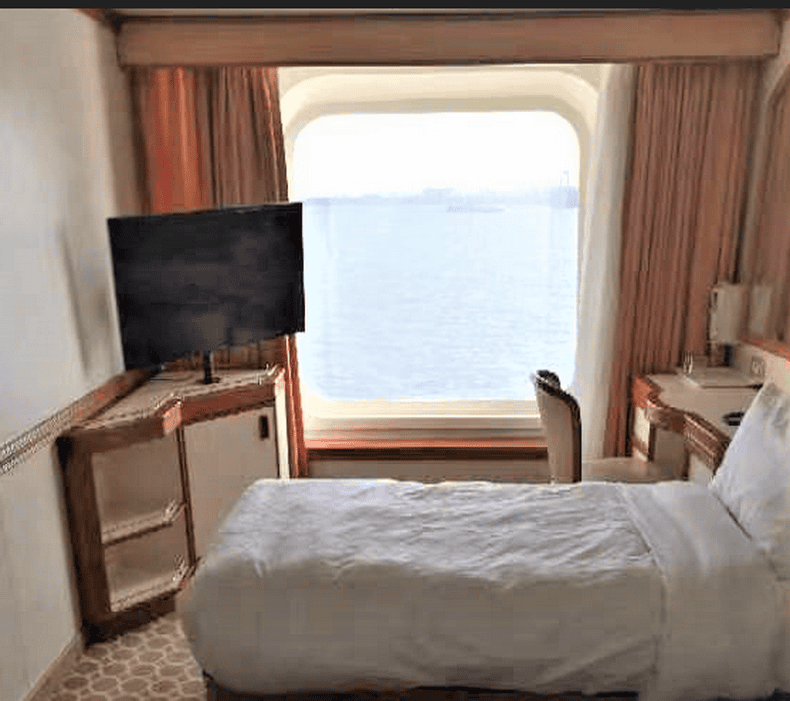 相对普通的海景房,舷窗稍大一些,此房型只能住2人。