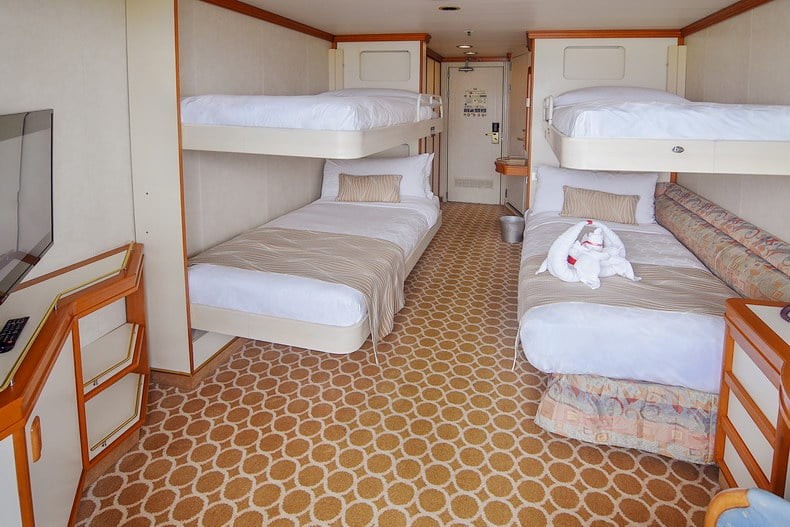 部分房间内有2张下拉床或1张抽拉式沙发床供房间内第3~4人入住(仅有10间),其他房间内只能住2人。