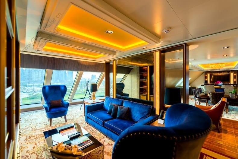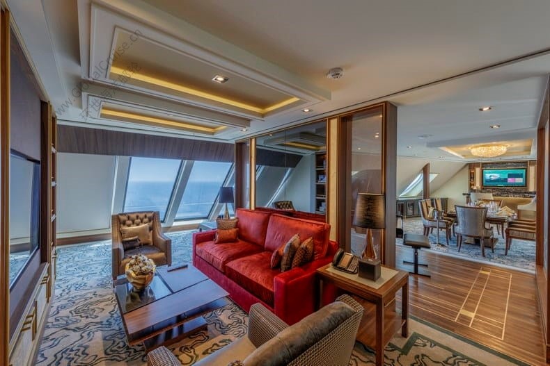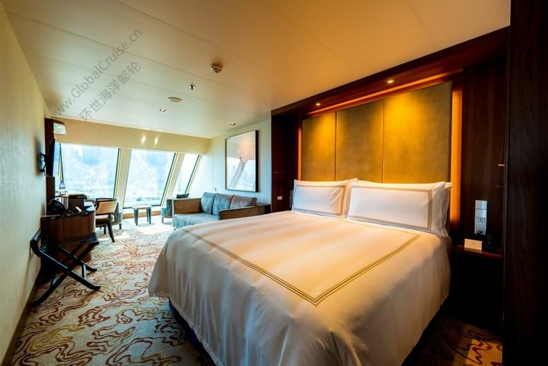 1张特大双人床+1张双人床+1张双人沙发床,位于17楼船头位置,LOFT结构,部分空间在18楼。