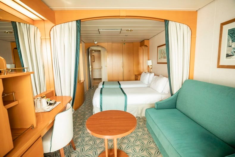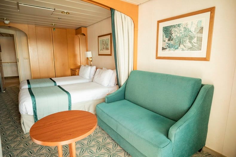 房间总面积包含阳台面积,位于10楼船中,豪华舒适,内部高品质设施一应俱全,带柔软沙发的起居空间宽敞明亮。同时配备私人阳台让您饱览无敌海景。房间内有一张双人沙发床供第3~4人入住。