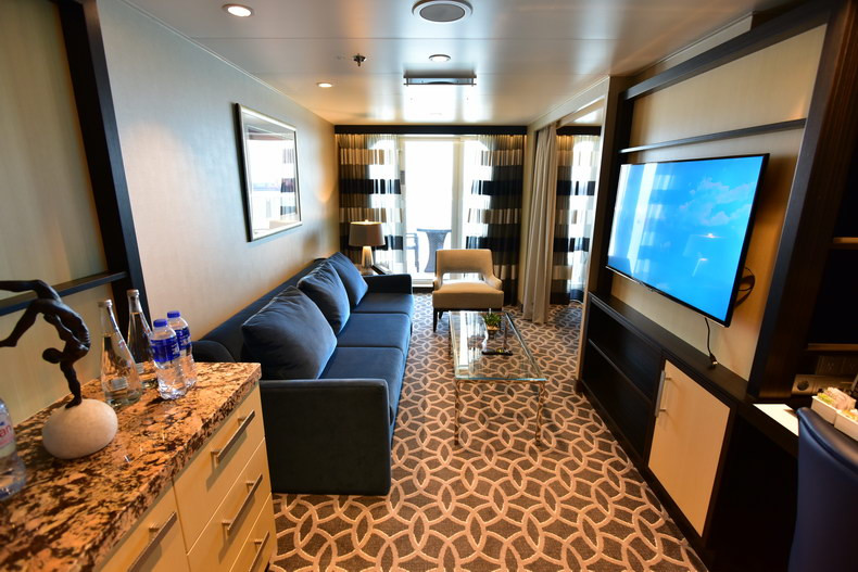 房间总面积包含阳台面积,位于船中离电梯近的位置,出行非常方便,位于船中离电梯近的位置,出行非常方便,提供两张单人床(可拼成大号双人床),可观赏迷人海上景观的私人阳台,起居区配桌子和沙发,沙发可变成双人床,供第3、4人入住。配有浴缸。