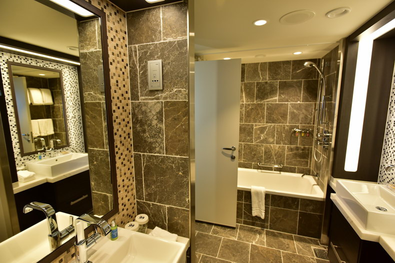 配有浴缸、两个漱口池、吹风机与梳妆区的私人卫生间及电视、收音机、电话、迷你冰箱、礼宾服务。所有舱房内均提供电热水壶、毛巾、香皂、沐浴露、洗发露、一次性拖鞋。