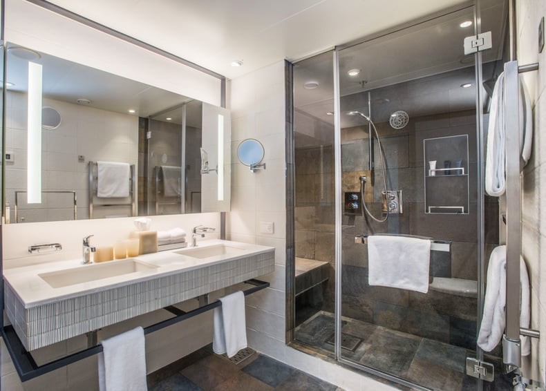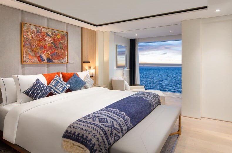 客房设施包含高级大床,每日纯净饮用水,会客厅及餐厅区域,独立卫生间(含地暖,Freyja品牌沐浴用品,洗漱用品,梳子,棉签,拖鞋,吹风机),42寸平板电视,保险箱,热水壶,卫星电话及移动电话服务,110V/220V插座,USB插座以及免费Wi-Fi(信号速度无法保证);迷你吧:含茶包(每日免费补充)、 软饮及零食、咖啡机及胶囊咖啡、酒精饮料(更多样/升级酒类)。