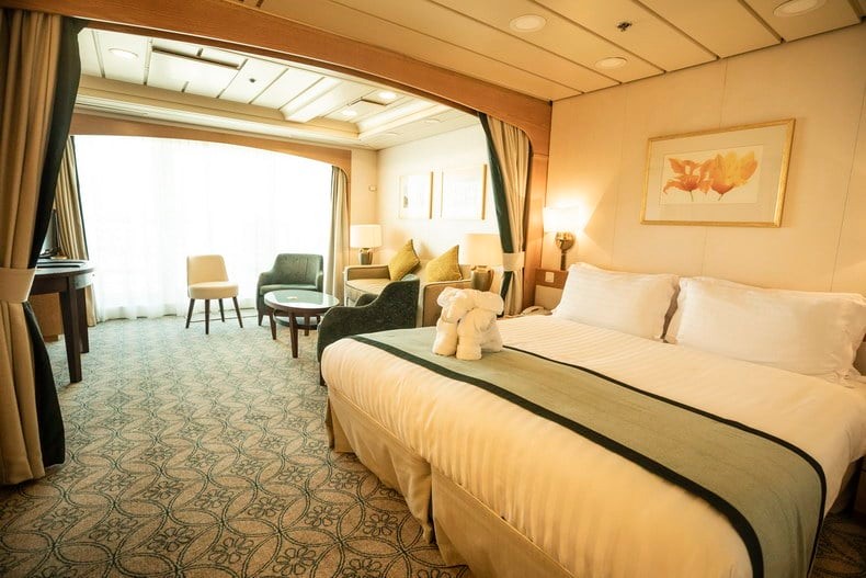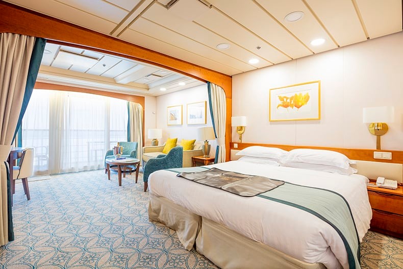 房间总面积包含阳台面积,位于10楼船中,宽敞的客舱空间,明亮的海景阳台,营造舒适住宿体验。房间内有一张双人沙发床供第3~4人入住。
