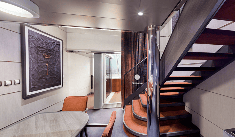 部分房间阳台为一半玻璃一半金属栏杆、主卧室位于楼上、下层为舒适的起居区(配有双人沙发床)、宽敞的阳台设有带漩涡池、两间浴室(一间带浴缸,一间带淋浴)、互动电视、迷你酒吧 、空调、电话和保险箱、2个步入式衣柜、WiFi连接。 注:房间信息及图片仅供参考,以实际入住为准。