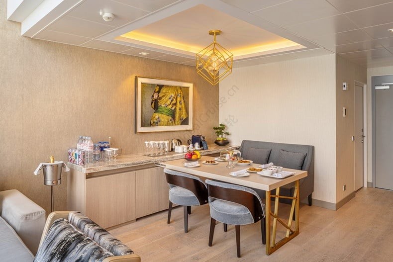 2、尊享套房服务:免航程服务费(仅基本服务费);皇家Genie管家服务;优先预留剧院较优观演席位;量身定制餐饮计划,提供餐饮推荐和预定管理服务;游轮奢侈品牌精品店的购物协调服务;策划海上私人派对庆祝活动;更多私人定制化游轮体验