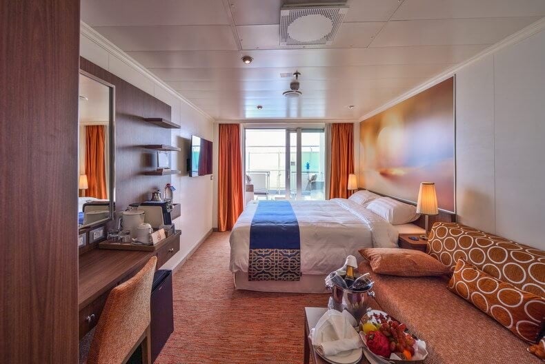配有宽敞阳台,巴伐利亚阳台房还可以通过外层甲板直通船尾的观海酒吧并免费进入,享有专用贵宾登船通道、优先上下船、专属服务台、专属管家、免费矿泉水、欢迎香槟等更多专享服务及美食。房间内有卫生间及浴室。房间还配备电视、保险箱、吹风机、电热水壶、枕头自选菜单、毛巾、浴巾、浴室用品、拖鞋、迷你吧、雨伞、手提袋等。 注:房间信息及图片仅供参考,以实际入住为准。